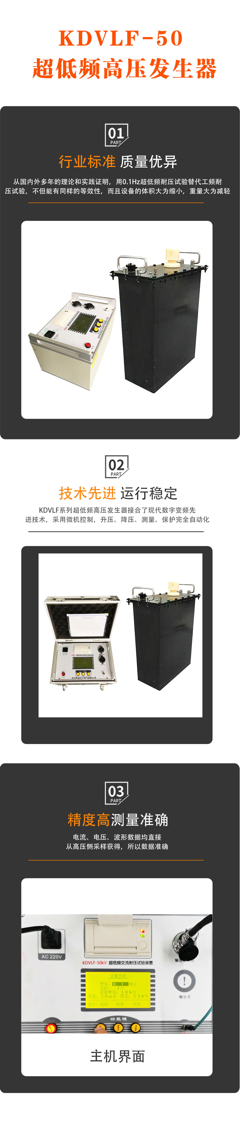 1、額定電壓小于或等于80kV的超低頻采用單聯(lián)結(jié)構(gòu)(一臺升壓器);大于80kV的超低頻采用串聯(lián)結(jié)構(gòu)(兩臺升壓器串聯(lián)),使整體重量大大減輕,帶載能力增強(qiáng),而且兩臺升壓器可單獨(dú)作低電壓等級的超低頻使用。