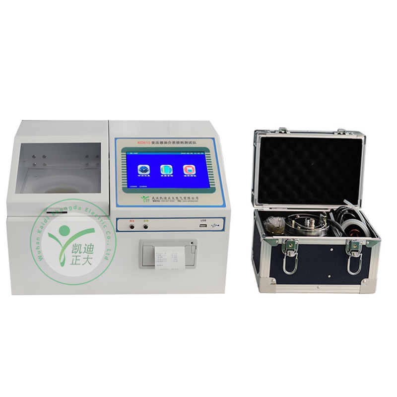 KD610絕緣油介質(zhì)損耗測試儀是用于絕緣油等液體絕緣介質(zhì)的介質(zhì)損耗角及體積電阻率測試的一體化結(jié)構(gòu)的高精密儀器。內(nèi)部集成了介損油杯、溫控儀、溫度傳感器、介損測試電橋、交流試驗(yàn)電源、標(biāo)準(zhǔn)電容器、高阻計(jì)、直流高壓源等主要部件。其中加熱部分采用了高頻感應(yīng)加熱方式,該加熱方式具備油杯與加熱體非接觸、加熱均勻、速度快、控制方便等優(yōu)點(diǎn)。交流試驗(yàn)電源采用AC-DC-AC轉(zhuǎn)換方式,有效避免市電電壓及頻率波動對介損測試準(zhǔn)確性影響,即便是發(fā)電機(jī)發(fā)電,該儀器也能正確運(yùn)行。內(nèi)部標(biāo)準(zhǔn)電容器為SF6充氣三極式電容,該電容的介損及電容量不受環(huán)境溫度、濕度等影響,保證儀器長時間使用后仍然精度一致。