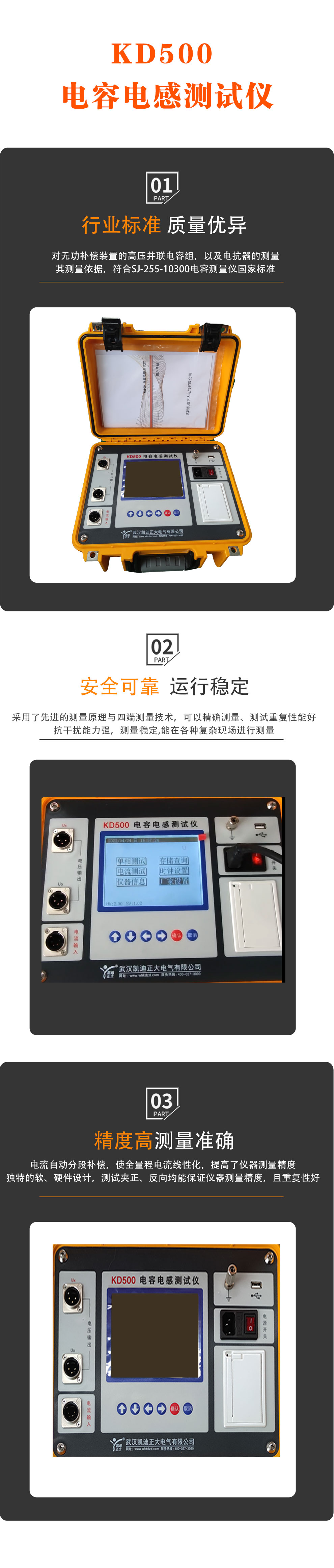 KD-500智能電容電感測試儀要是對(duì)無功補(bǔ)償裝置的高壓并聯(lián)電容組,以及電抗器的測量,其測量依據(jù),符合SJ-255-10300電容測量儀國家標(biāo)準(zhǔn)。針對(duì)變電站現(xiàn)場高壓并聯(lián)電容器組測量時(shí)存在的問題而專門研制。