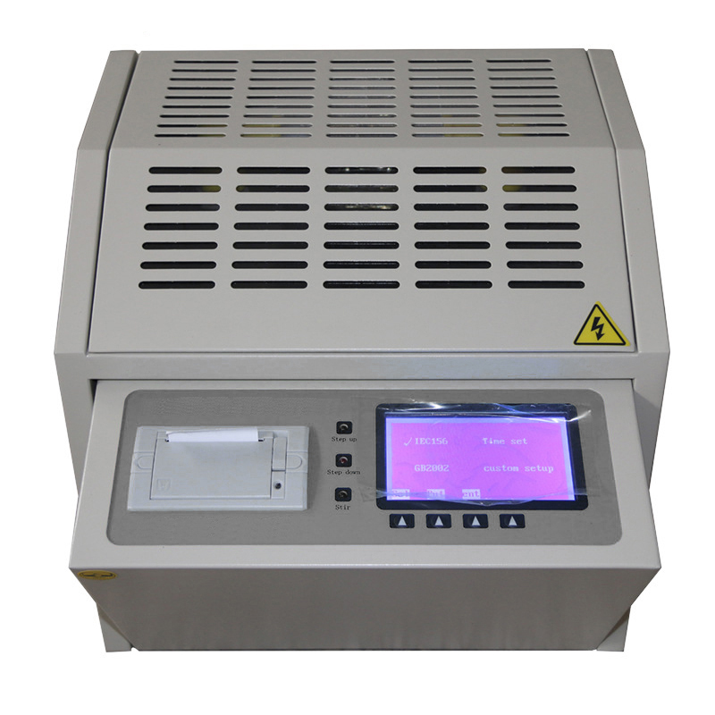 1. 為單油杯結(jié)構(gòu)。采用單片機(jī)控制,可自動(dòng)完成升壓、保持、降壓、攪拌、靜放、顯示計(jì)算、打印等一系列操作,可在0-80kV范圍內(nèi)進(jìn)行絕緣油耐壓測試。