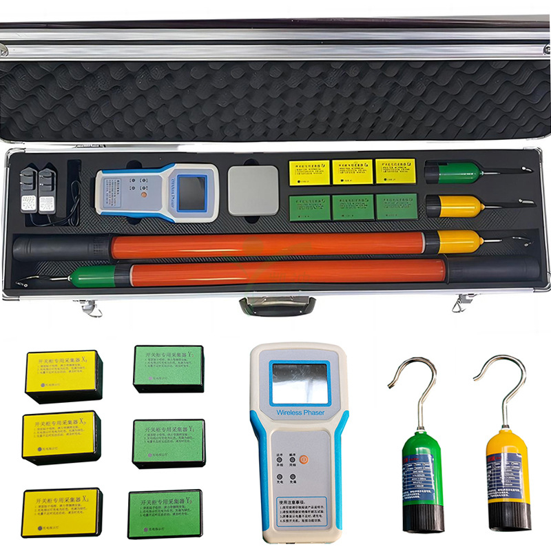 儀器引用《DL/T971-2005帶電作業(yè)用交流1KV-35KV便攜式核相儀》,采用無線傳輸技術(shù),操作安全可靠,使用方便,克服了有線核相器的諸多缺點。