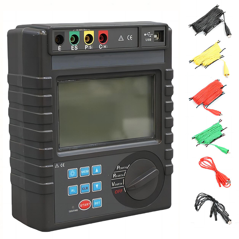 接地電阻土壤電阻率測(cè)試儀由主機(jī)、監(jiān)控軟件、測(cè)試線(xiàn)、輔助接地棒、通訊線(xiàn)等組成。主機(jī)大LCD顯示,白屏背光,棒圖指示,一目了然。同時(shí)能存儲(chǔ)300組數(shù)據(jù),通過(guò)監(jiān)控軟件實(shí)現(xiàn)歷史查詢(xún)與在線(xiàn)實(shí)時(shí)監(jiān)測(cè)功能,動(dòng)態(tài)顯示,告警指示,具有歷史數(shù)據(jù)讀取、查閱、保存、報(bào)表、打印等功能。