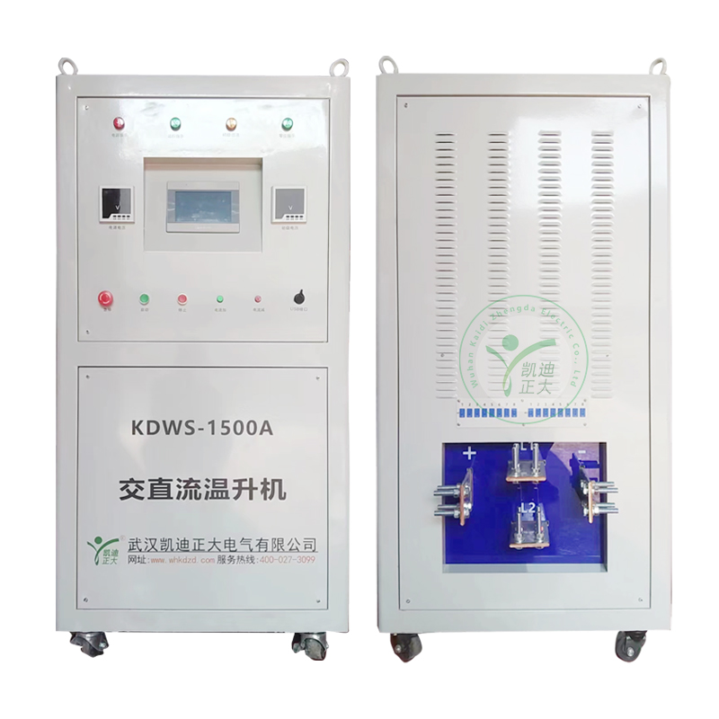 KDWS-1500A交直流溫升機(jī),采用專(zhuān)用系統(tǒng)控制板進(jìn)行控制,維綸系列觸控屏作為人機(jī)界面,實(shí)現(xiàn)的全自動(dòng)交直流大電流檢測(cè)設(shè)備。該系列設(shè)備通過(guò)安裝不同模塊,可實(shí)現(xiàn)不同的大電流輸出,溫度測(cè)量等實(shí)驗(yàn)。通過(guò)人機(jī)界面選擇可實(shí)現(xiàn)手動(dòng)自動(dòng)操作,查看溫度數(shù)據(jù)等操作并對(duì)數(shù)據(jù)進(jìn)行簡(jiǎn)單處理??稍黾訑?shù)據(jù)導(dǎo)出功能,通過(guò)U盤(pán)將數(shù)據(jù)導(dǎo)出到計(jì)算機(jī),做進(jìn)一步處理。