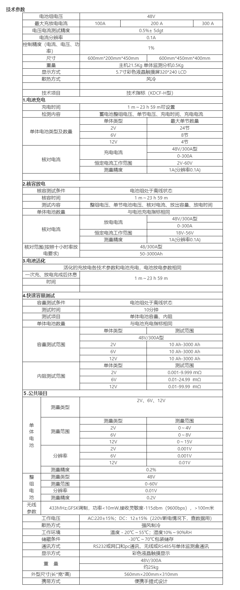 1.可對整組電池進行充電、放電、活化、在線監(jiān)測、快速核容;