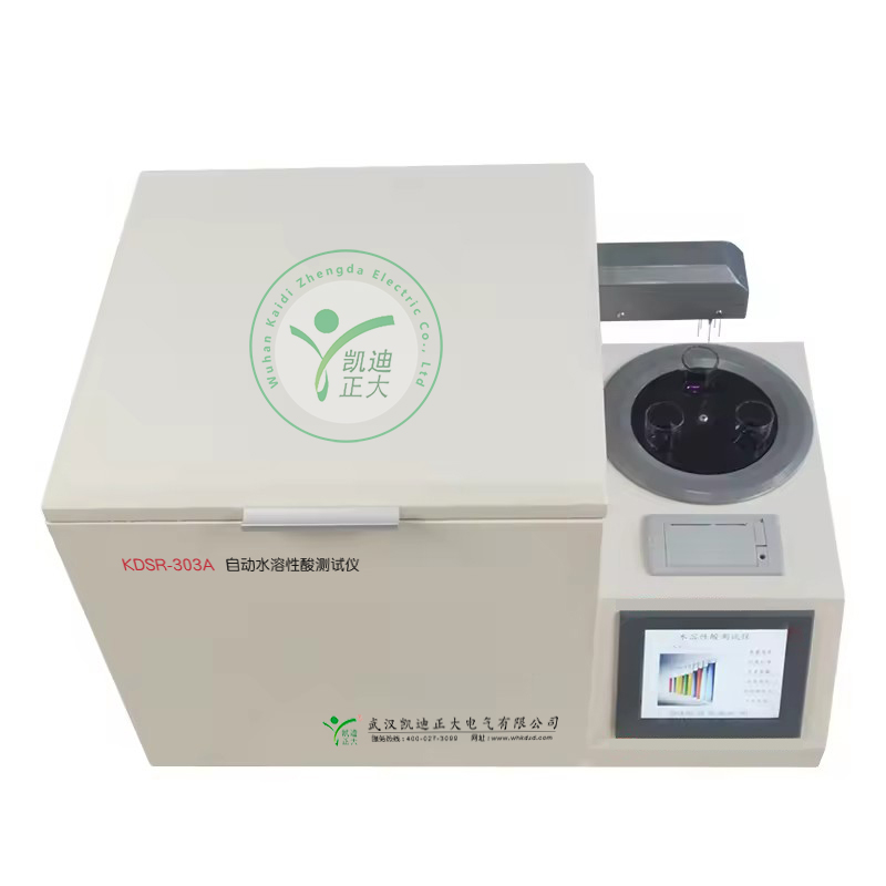 我公司生產(chǎn)的KDSR-303A型自動(dòng)水溶性酸測(cè)試儀(比色法)是根據(jù)《GB/T7598-2008運(yùn)行中變壓器油水溶性酸測(cè)定法》及相關(guān)標(biāo)準(zhǔn)設(shè)計(jì)制造。采用大屏幕彩色液晶顯示器,利用微處理器控制,可以根據(jù)用戶的設(shè)定條件自動(dòng)完成加熱、恒溫、振蕩、取樣、測(cè)試、清洗、打印等功能,可以一次性測(cè)量1-3個(gè)樣品,縮短了用戶的測(cè)試時(shí)間,提高了工作效率,減輕了工作人員的勞動(dòng)強(qiáng)度;并支持無(wú)線傳輸功能。