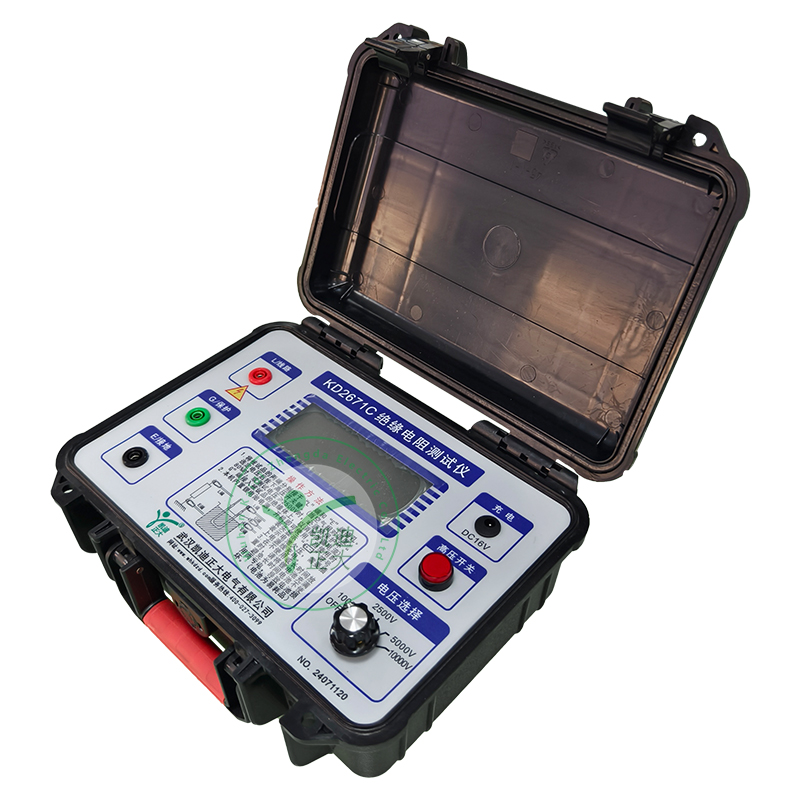 KD2671C絕緣電阻測試儀由中大規(guī)模集成電路組成。本表輸出功率大,短路電流值高,輸出電壓等級多(有四個電壓等級)。工作原理為由機內(nèi)電池作為電源經(jīng)DC/DC變換產(chǎn)生的直流高壓由E極出經(jīng)被測試品到達L極,從而產(chǎn)生一個從E到L極的電流,經(jīng)過I/V變換經(jīng)除法器完成運算直接將被測的絕緣電阻值由LCD顯示出來。