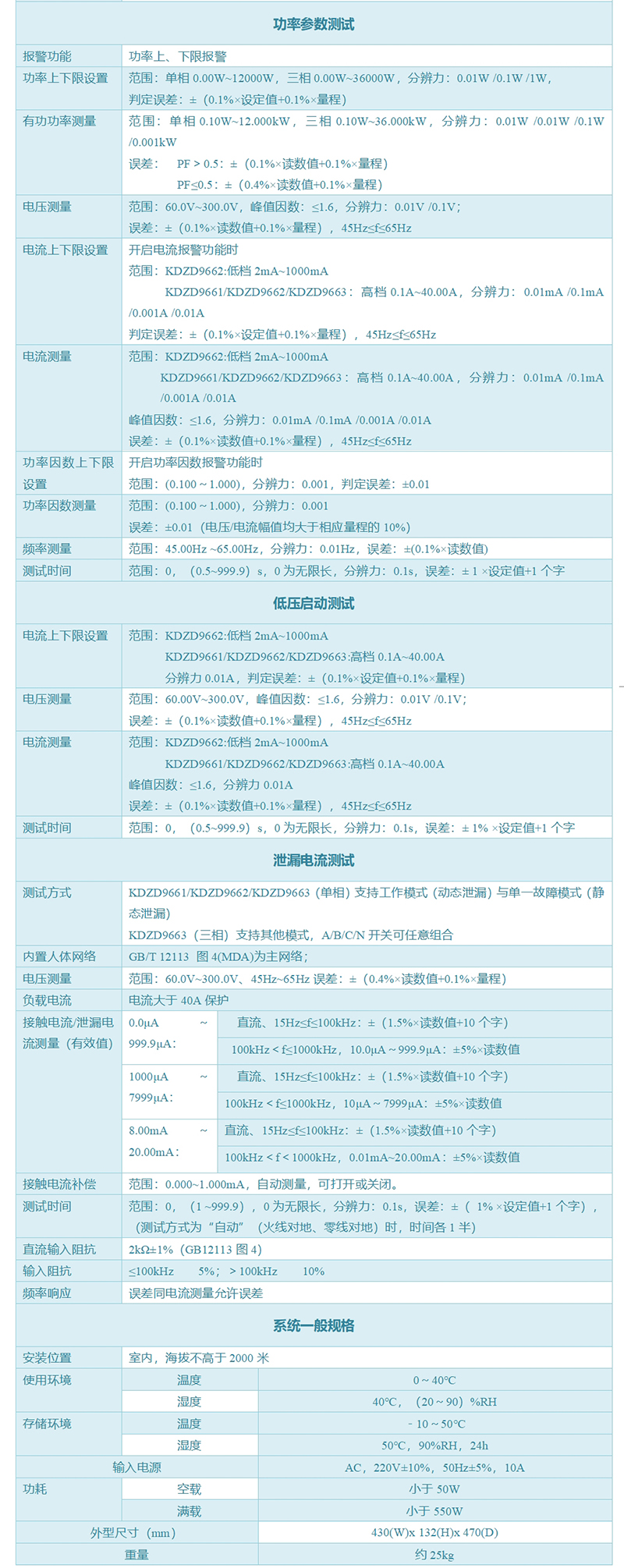 KDZD9661/KDZD9662/KDZD9663電氣安全性能綜合分析儀,涵蓋交流耐壓、直流耐壓、絕緣電阻、接地導(dǎo)通電阻、功率、啟動(dòng)、泄漏電流、電弧偵測、開路偵測等功能于一體,大屏觸控,易學(xué)易用,精準(zhǔn)高效,可靠穩(wěn)定,接口豐富。