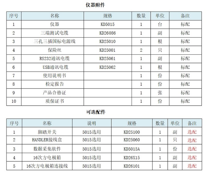 10、隨機(jī)附件:使用說明書、測試報(bào)告、質(zhì)保證書、保修卡、裝箱單、儀器、電源線、保險(xiǎn)絲、三端開爾文測試夾、RS232通訊電纜、USB通訊、電纜腳踏開關(guān)(選配))