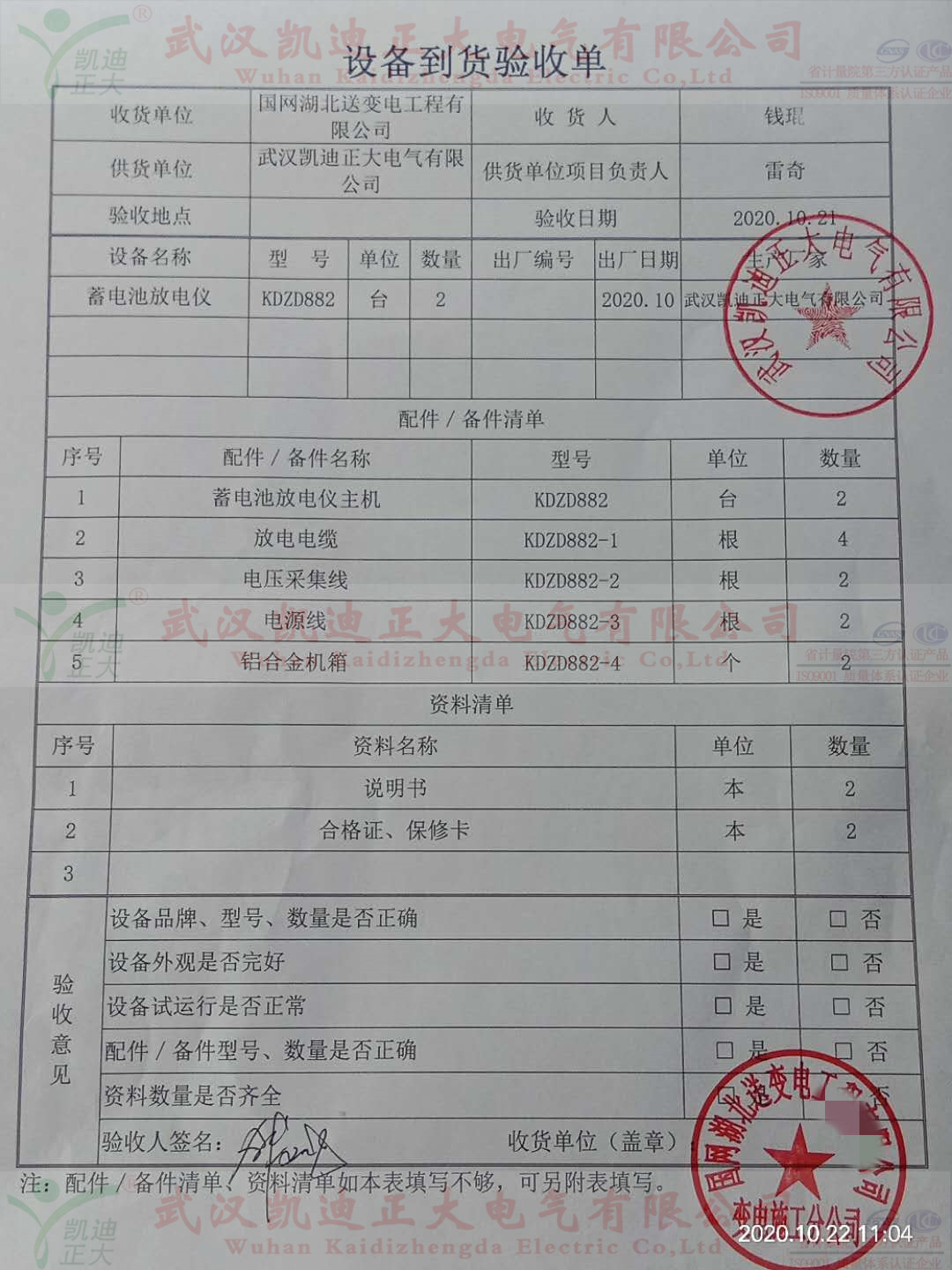 賀KDZD882放電儀獲國網(wǎng)湖北送變電公司驗(yàn)收合格