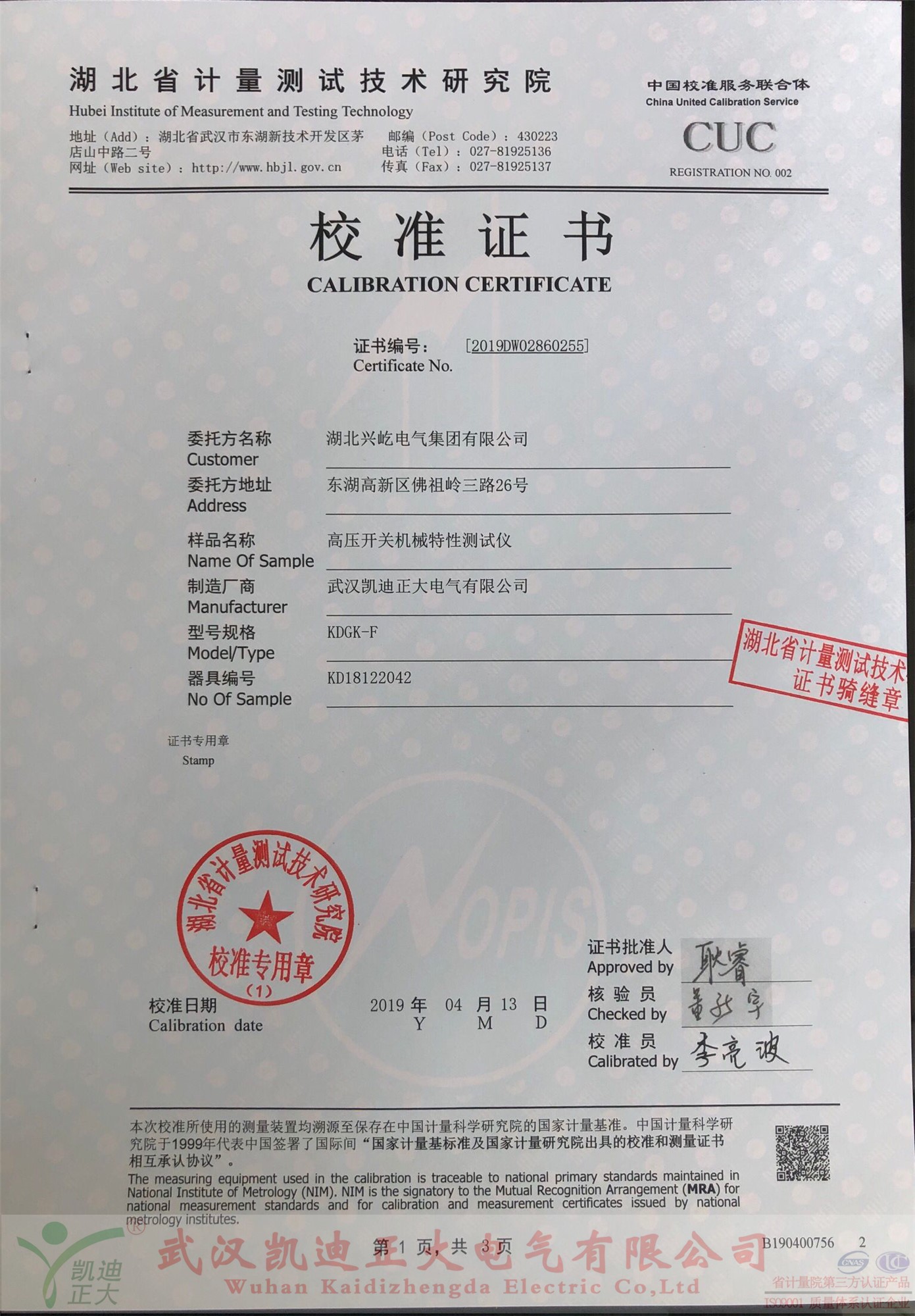 購買后便送往中國校準(zhǔn)服務(wù)聯(lián)合體-湖北省計(jì)量測(cè)試技術(shù)研究院檢定,由省計(jì)量院出具的《校準(zhǔn)證書》,證書編號(hào):2019DW2860255,校準(zhǔn)員:李亮波,檢驗(yàn)員:董新宇,證書批準(zhǔn)人:耿睿。