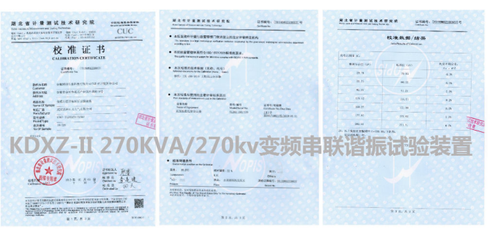 凱迪正大KDXZ-II 270KVA變頻串聯(lián)諧振試驗裝置取得專業(yè)校準(zhǔn)證書