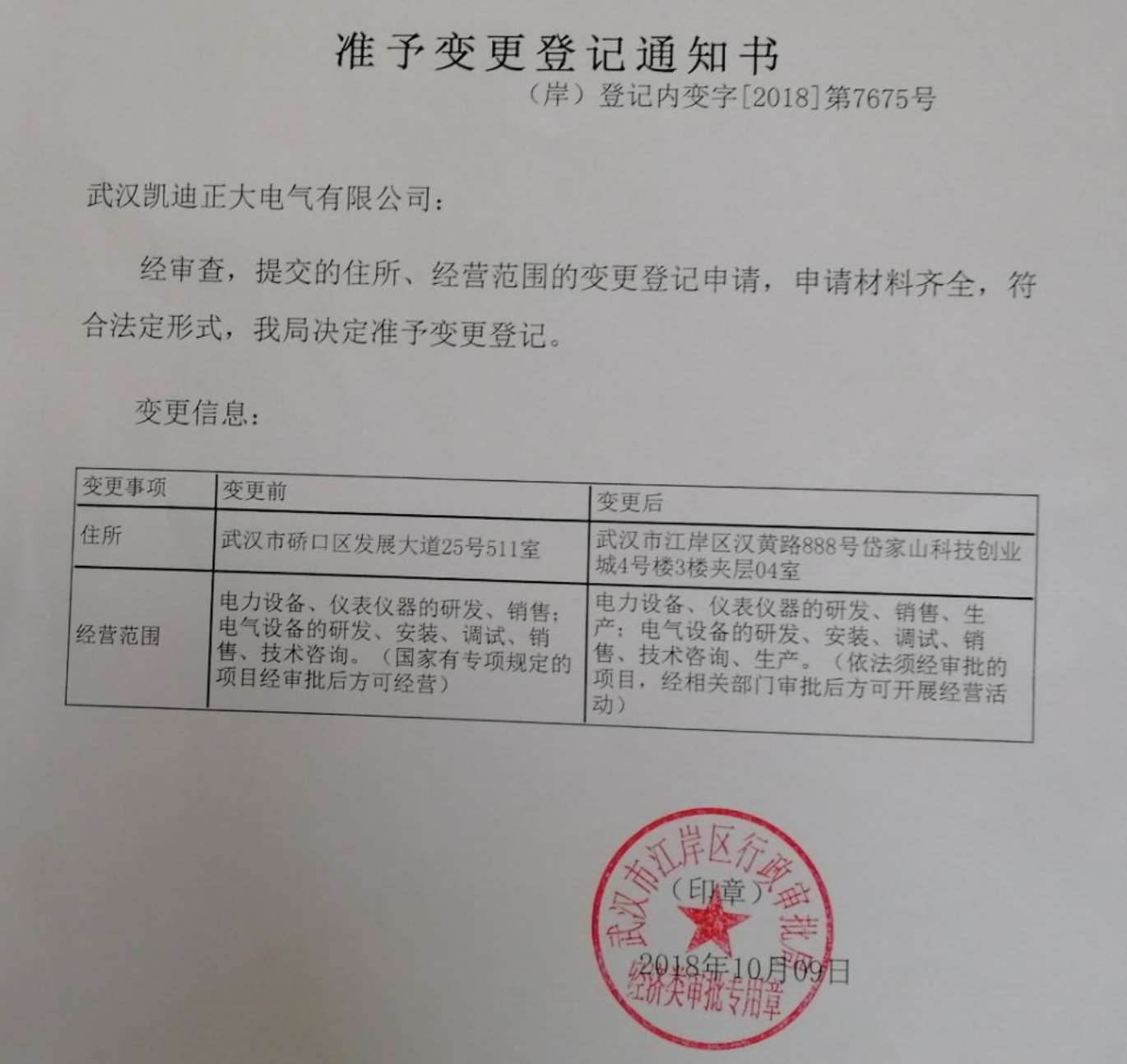 變更前:住所武漢市硚口區(qū)發(fā)展大道25號(hào)511室 經(jīng)營(yíng)范圍:電力設(shè)備、儀表儀器的研發(fā)、銷(xiāo)售;電氣設(shè)備的研發(fā)、安裝、調(diào)試、銷(xiāo)售、技術(shù)咨詢(xún)。(國(guó)家有專(zhuān)項(xiàng)規(guī)定的項(xiàng)目經(jīng)審批后方可經(jīng)營(yíng))