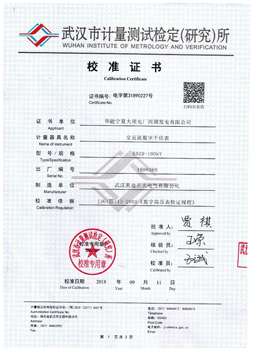 證書單位:華夏寧夏大壩電廠四期發(fā)電有限公司