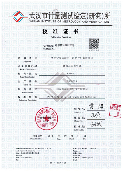 證書(shū)單位:華夏寧夏大壩電廠四期發(fā)電有限公司
