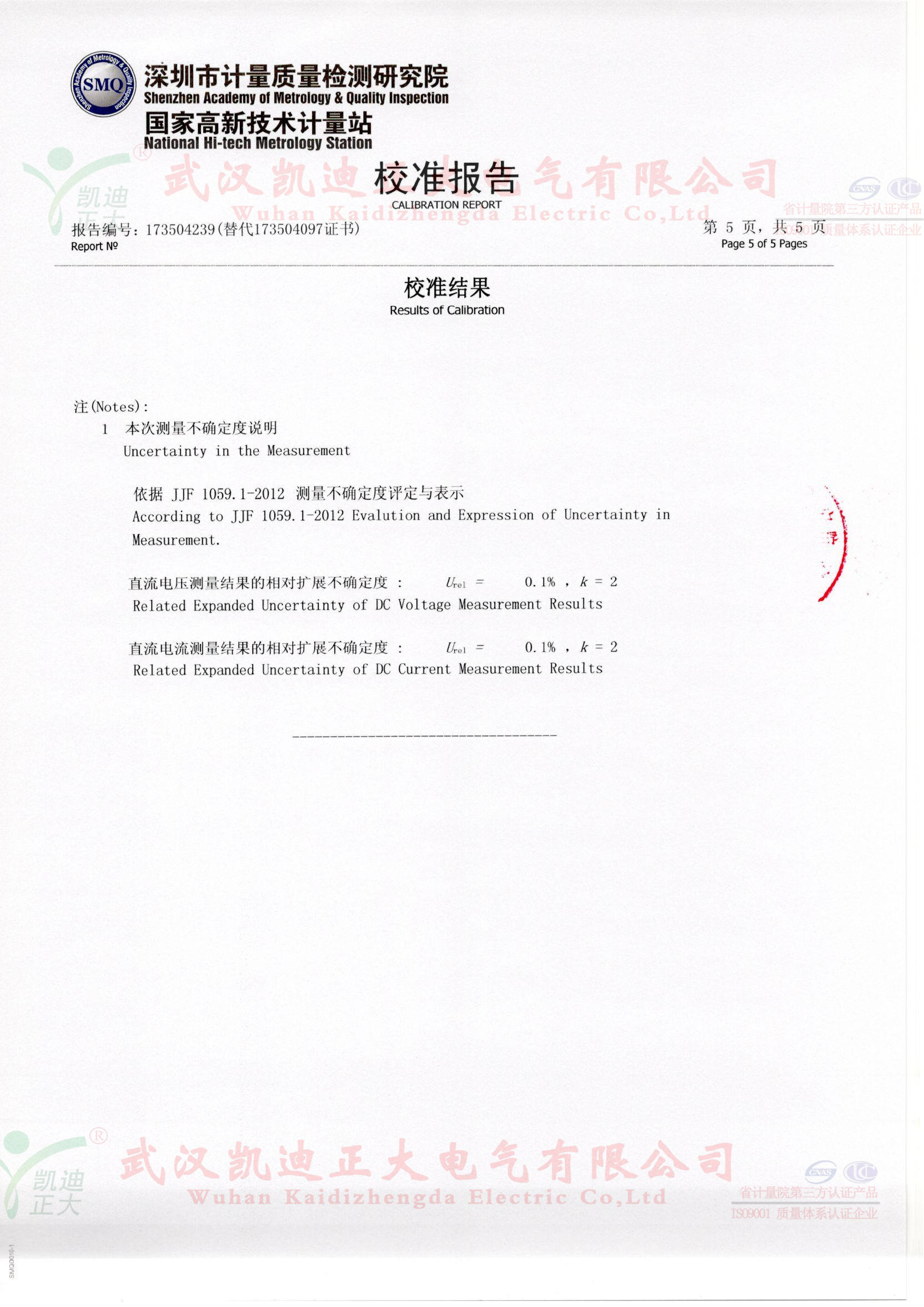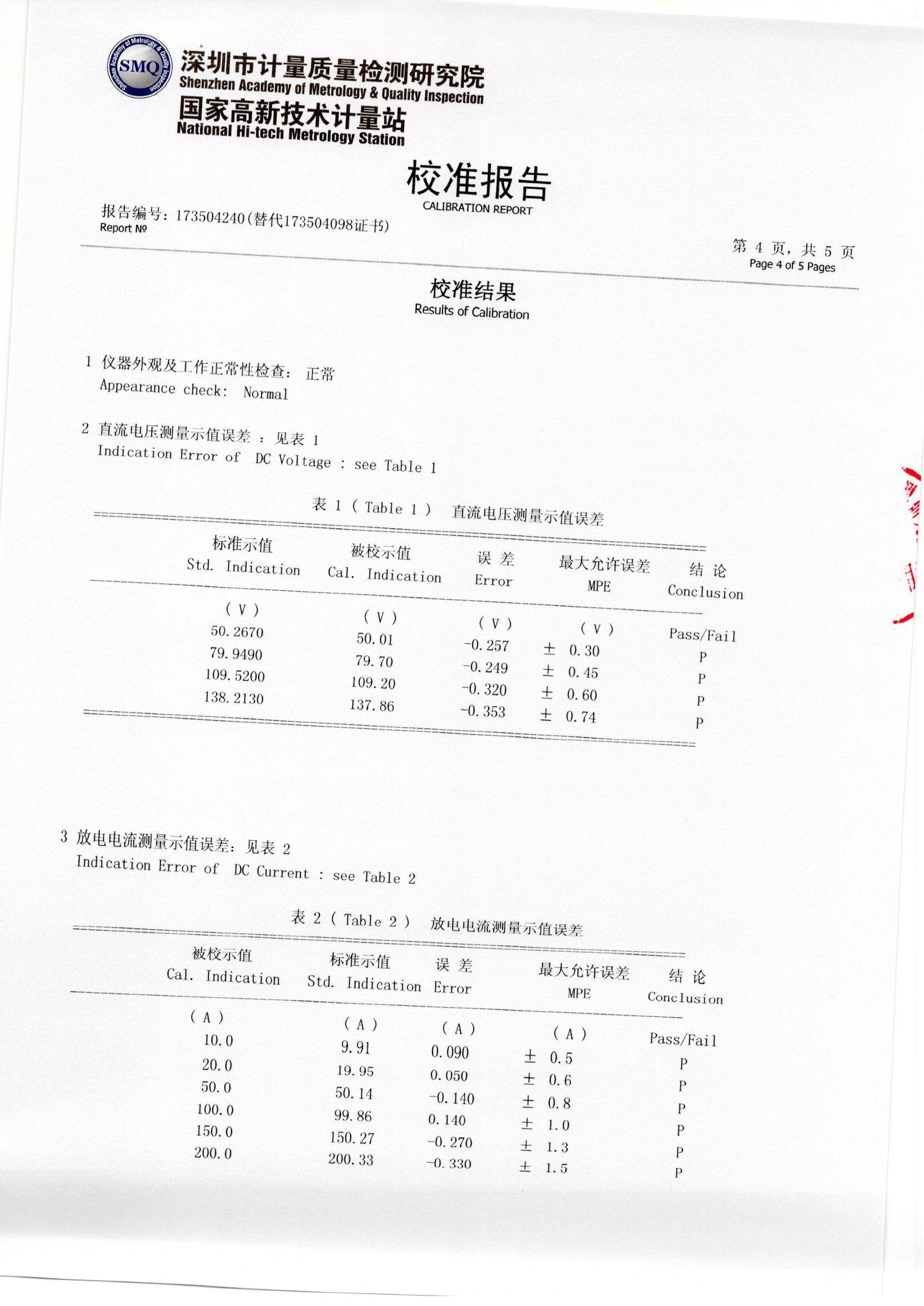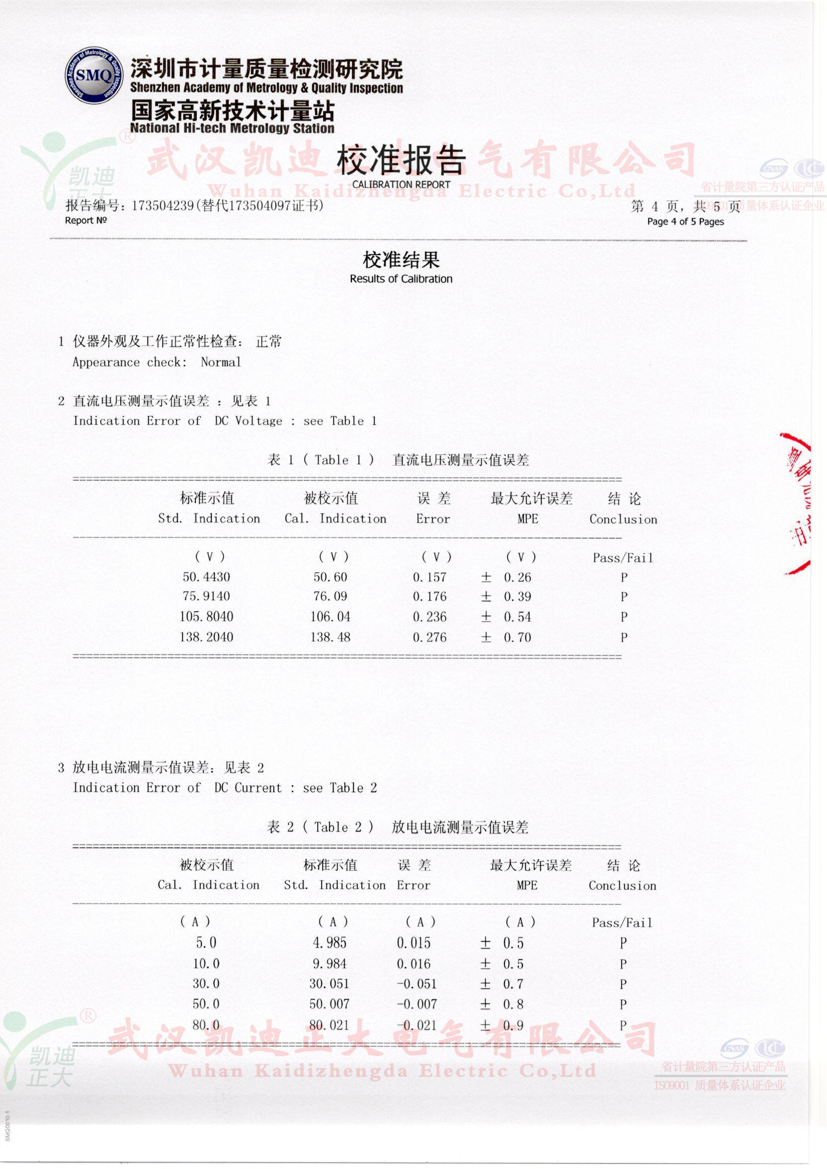 應(yīng)中廣核遼寧紅沿河核電有限公司的需求,將武漢凱迪正大電氣公司生產(chǎn)的KDZD880(110V80A)智能蓄電池放電儀出具國(guó)家高新技術(shù)研究院的計(jì)量報(bào)告后才能使用。校準(zhǔn)報(bào)告:173504097證書(shū)號(hào),出廠編號(hào):KD14122815,資產(chǎn)編號(hào):500077905,校準(zhǔn)依據(jù):參考JJF158-2016數(shù)字多用表校準(zhǔn)規(guī)范JJF(軍工)108-2015電池充放電測(cè)試儀校準(zhǔn)規(guī)范。嚴(yán)格出具檢定合格報(bào)告。