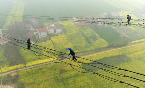 此次停電檢修從3月12日起,為期10天,參與檢修的輸電線(xiàn)路區(qū)段長(zhǎng)134公里,有338座桿塔,是華中電網(wǎng)系統(tǒng)的骨干組成部分,承擔(dān)著南北電力互供的負(fù)荷分流重任。新華社記者郝同前攝