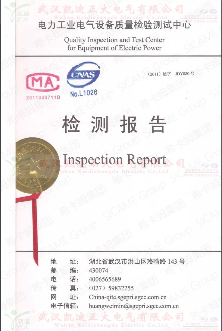 架空配電線路設(shè)備獲得武高所質(zhì)量檢驗(yàn)中心報(bào)告