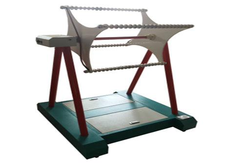 首先將絕緣繩一段固定在鋁棒的一段,控制盒電源開(kāi)關(guān)合上,將腳踏開(kāi)關(guān)接上,操作人員只需將絕緣繩理好,腳踩開(kāi)關(guān),將絕緣繩按順序纏繞于電極的凹槽中,直到繞滿整根電極或繞完整根絕緣繩,后將絕緣繩固定在裝置上,調(diào)節(jié)電極位置,使得水平方向2根電極相平接高壓,垂直方向2電極接地。