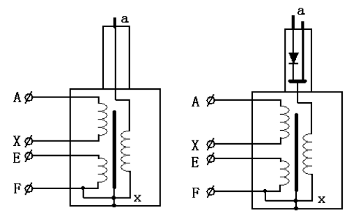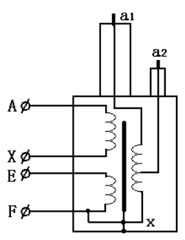 為了同時(shí)滿足一個(gè)變壓器電壓較高電壓較小與電流較低電流較大之間的矛盾,將高壓繞組分成兩個(gè)來(lái)繞,一個(gè)是電流較大的繞組,另一個(gè)是電流較小的繞組,然后兩個(gè)繞組串接分別引出,原理示意圖如下: