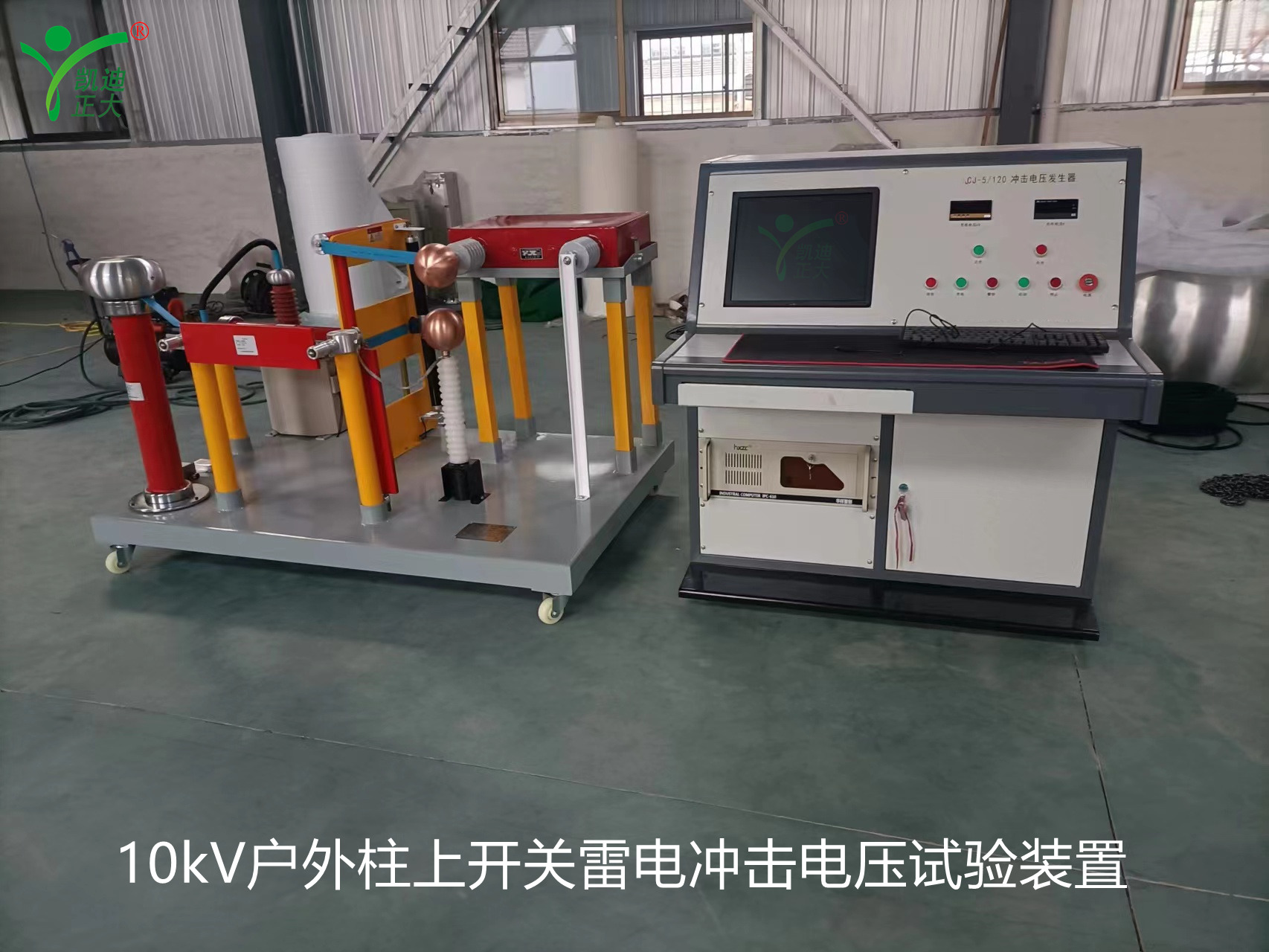 1、試驗人員進入試區(qū)后,首先確保接地棒是掛在沖擊電壓發(fā)生器本體上后,才能對被試品進行接線;