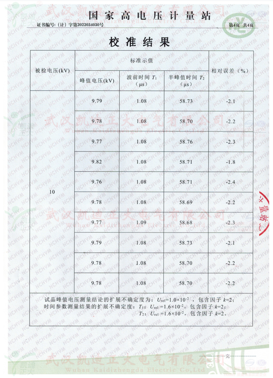 繼大連產(chǎn)品質(zhì)量檢驗(yàn)研究院采購低壓開關(guān)柜檢測(cè)設(shè)備KD7742智能耐壓絕緣測(cè)試儀獲大連計(jì)量檢驗(yàn)檢測(cè)研究院有限公報(bào)告,宿遷產(chǎn)品質(zhì)量技術(shù)研究院采購KDLJ-30雷電沖擊電壓發(fā)生裝置獲得國(guó)家高電壓計(jì)量站證書,這次成都計(jì)量院采購KDLJ-30雷電沖擊電壓發(fā)生裝置獲得國(guó)家高電壓計(jì)量站(武高所)校準(zhǔn)證書。