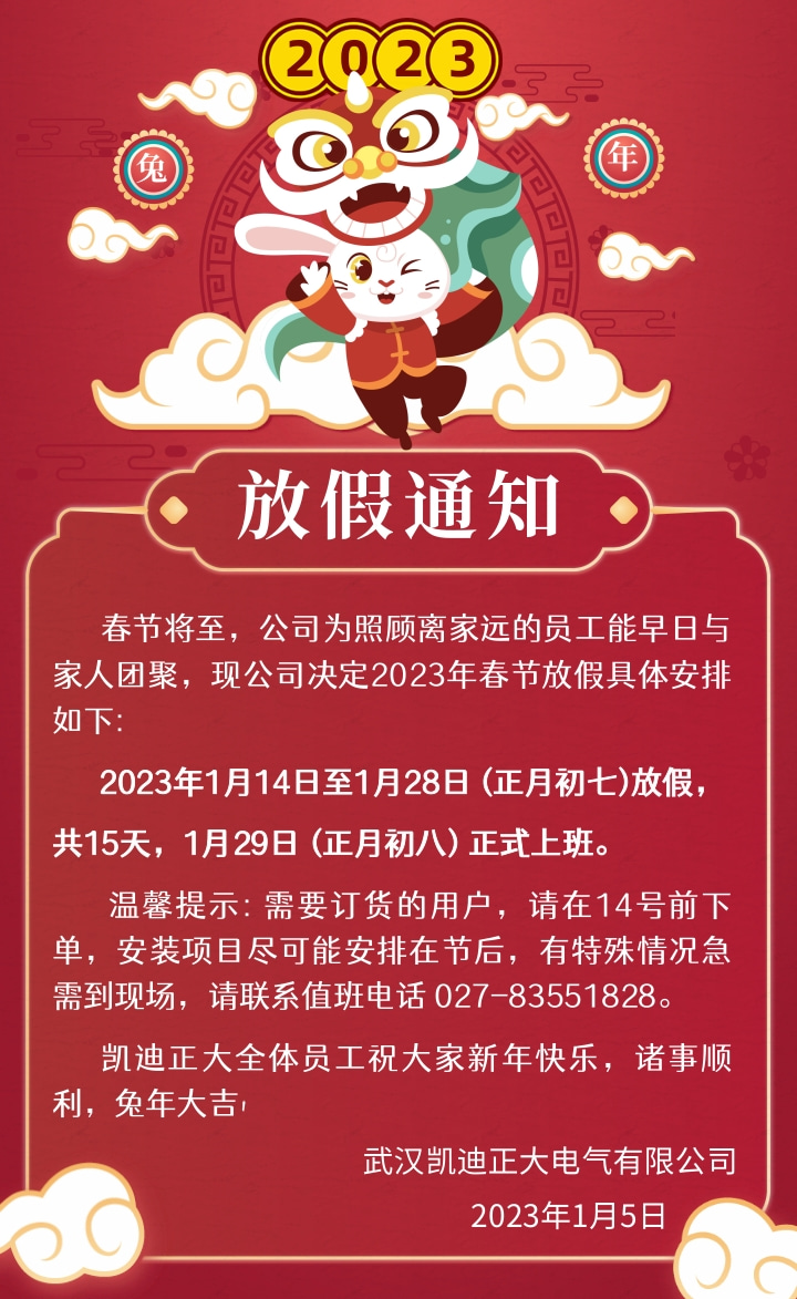 ?2023年春節(jié)將至,為使公司和員工共同度過(guò)一個(gè)歡樂(lè)、祥和、平安的新春佳節(jié),切實(shí)做好節(jié)日期間的安全工作,現(xiàn)將有關(guān)事宜通知如下: