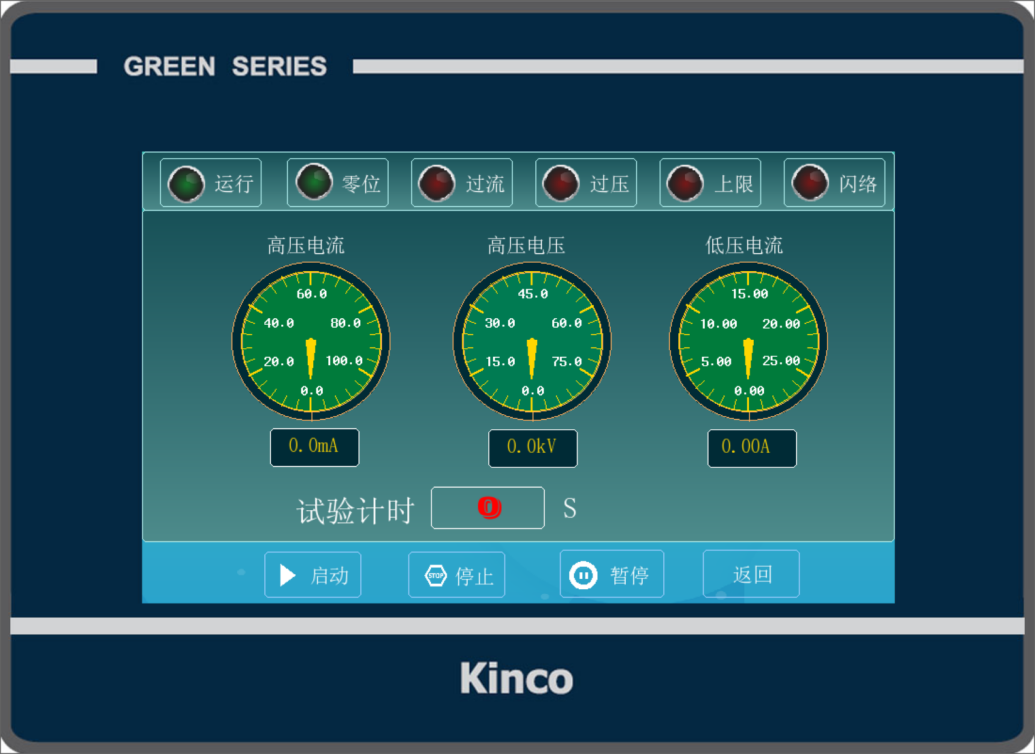 試驗狀態(tài):高壓擊穿設(shè)備安全說明,軟件里實時顯示當前試驗狀態(tài),如:試驗門是否關(guān)閉,升壓指示、歸零復(fù)位指示等。