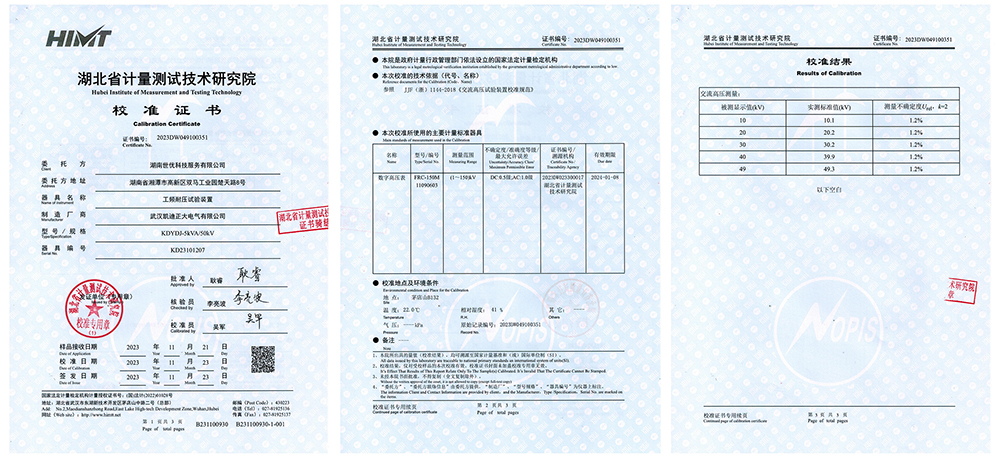 2023年11月23日,湖南世優(yōu)科技服務(wù)有限公司采購我司的KDYDJ-5KVA/50KV工頻耐壓試驗裝置,順利通過湖北省計量測試技術(shù)研究院的校準(zhǔn),這標(biāo)志著我們的產(chǎn)品在品質(zhì)和質(zhì)量值得肯定。這一喜訊不僅彰顯了我們的產(chǎn)品質(zhì)量,也進(jìn)一步證明了我們在電力行業(yè)中的能力和信譽。