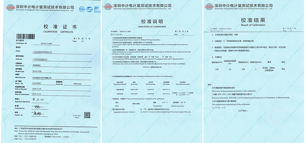 近日,廣東某能源發(fā)展有限公司訂購我司的KDHX-3208無線核相儀順利通過了深圳中電計量測試技術有限公司的專業(yè)校準,獲得校準證書。