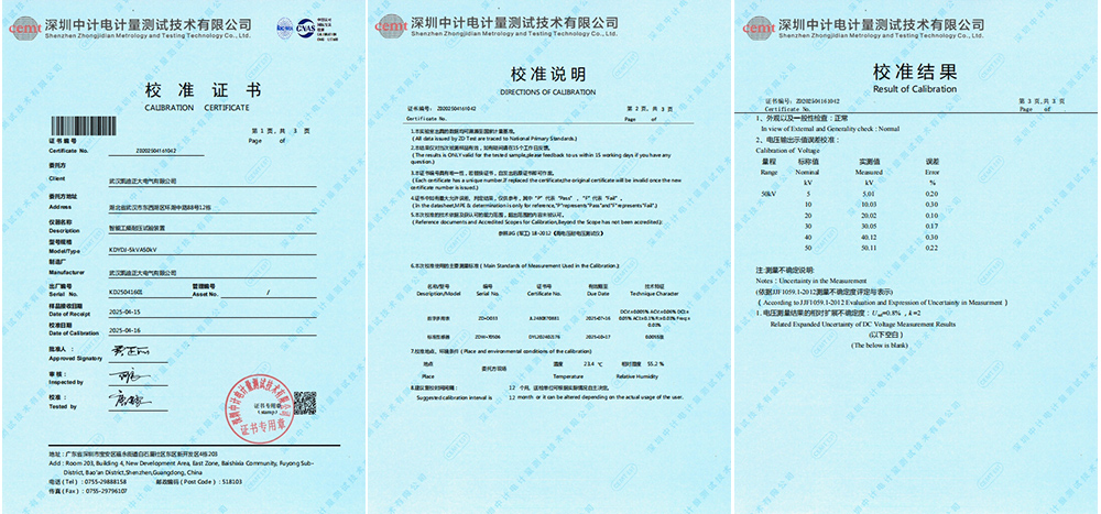 經(jīng)過此次校準(zhǔn),KDYDJ-5kVA50kV智能工頻耐壓試驗(yàn)裝置的可靠性得到了進(jìn)一步驗(yàn)證。其精確的電壓輸出、穩(wěn)定的性能測試結(jié)果以及專業(yè)的校準(zhǔn)服務(wù),都彰顯了武漢凱迪正大電氣有限公司在電力測試設(shè)備領(lǐng)域的地位。