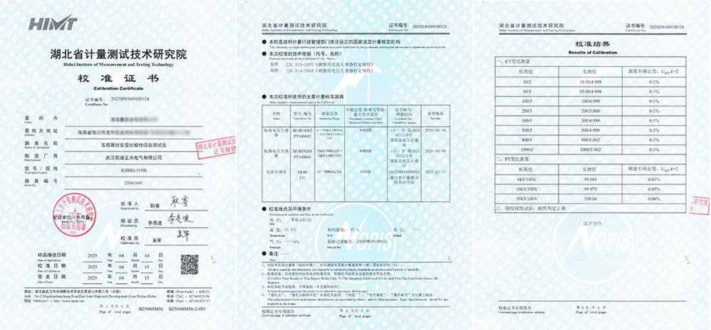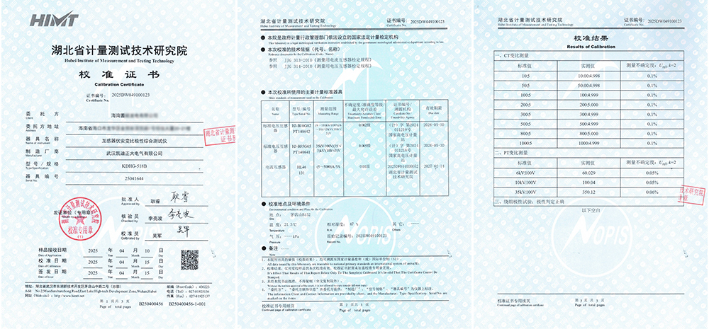 兩套設(shè)備均通過精度、重復(fù)性及穩(wěn)定性測試,同步獲得校準(zhǔn)證書(證書編號:2025DW049100124;2025DW049100123)。此次雙機(jī)全項達(dá)標(biāo)不僅印證了武漢凱迪正大產(chǎn)品的可靠品質(zhì),更彰顯了海南客戶在電力檢測裝備選型中的精準(zhǔn)判斷,為深化長期合作奠定了堅實互信基礎(chǔ)。