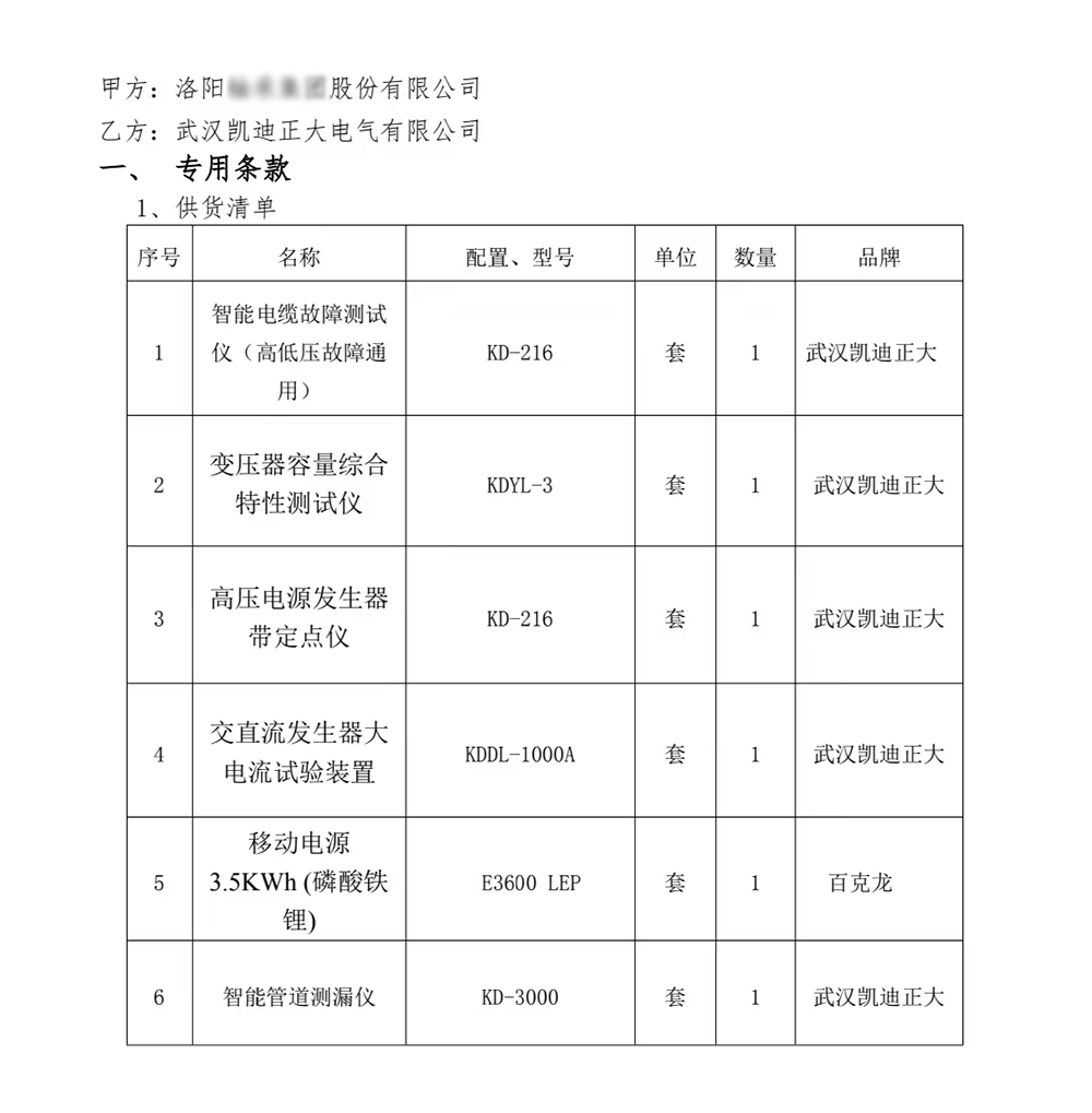 近日,洛陽(yáng)某集團(tuán)股份有限公司選擇與武漢凱迪正大電氣有限公司合作,批量采購(gòu)了一系列電氣測(cè)試設(shè)備。此次采購(gòu)的設(shè)備涵蓋了KD-216智能電纜故障測(cè)試儀、KDYL-3變壓器容量綜合特性測(cè)試儀、KD-216高壓電源發(fā)生器、KDDL-1000A交直流大電流試驗(yàn)裝置以及KD-3000智能管道測(cè)漏儀。
